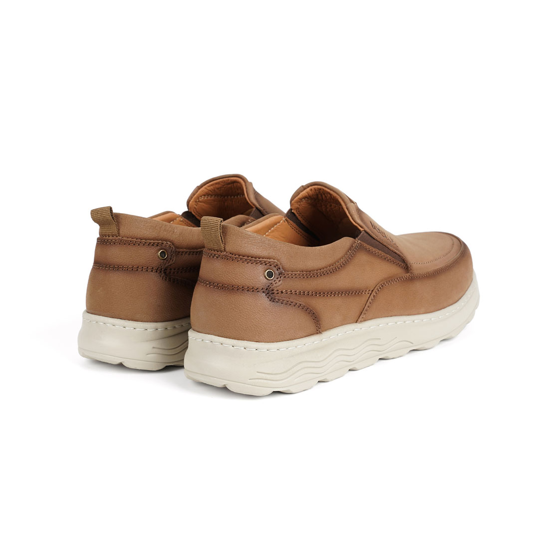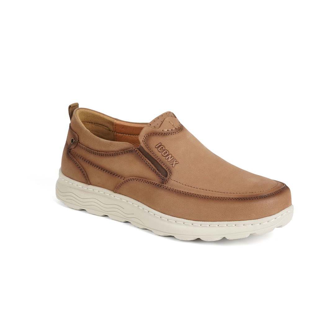 נעל גברים מעור בצבע חול עם בסיס לבן